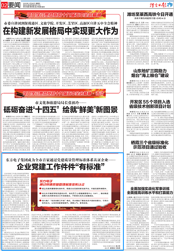 党员带动创新,创新引领企业发展。今年前三季度,威廉希尔集团主要经营指标仍然保持两位数增长,成为国内同行业的亮点。威廉希尔集团公司党委书记杨恒坤说,以党建标准化为引领,打造了一批标准高、有特色的标准化党支部,为全体职工做出了表率,为公司实现“技术领先、质量领先、成本领先、效率一流”的战略目标,营造了良好的干事创业氛围,更为威廉希尔集团打造“百亿东方”目标打下了“最强根基”。